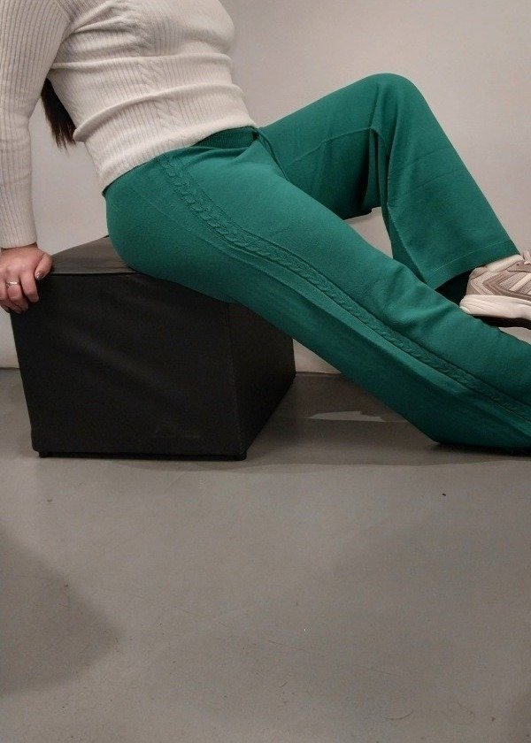 Pantalón con Trenzas en los Laterales Prenda Completa, el hilado utilizado para tejer es elastizado, se adapta a todo tipo de cuerpos.