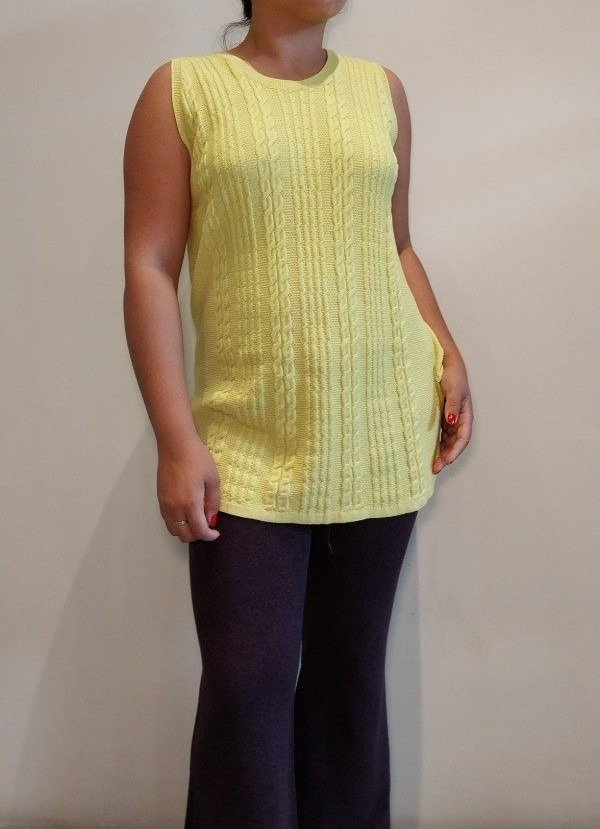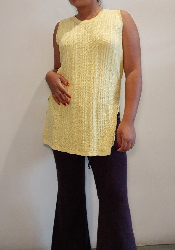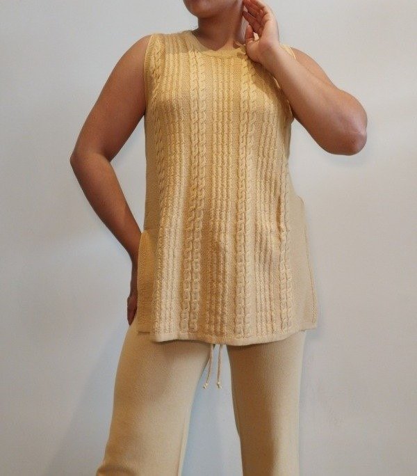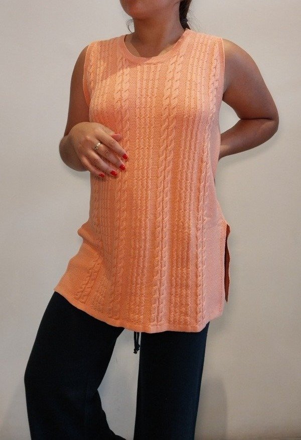 Musculosa larga redondo con tajo y trenzas