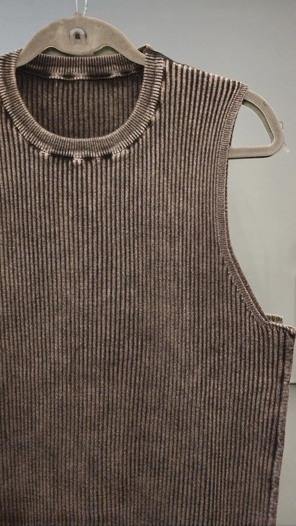 Musculosa tejido de punto Gastado cuello redondo morley canelon