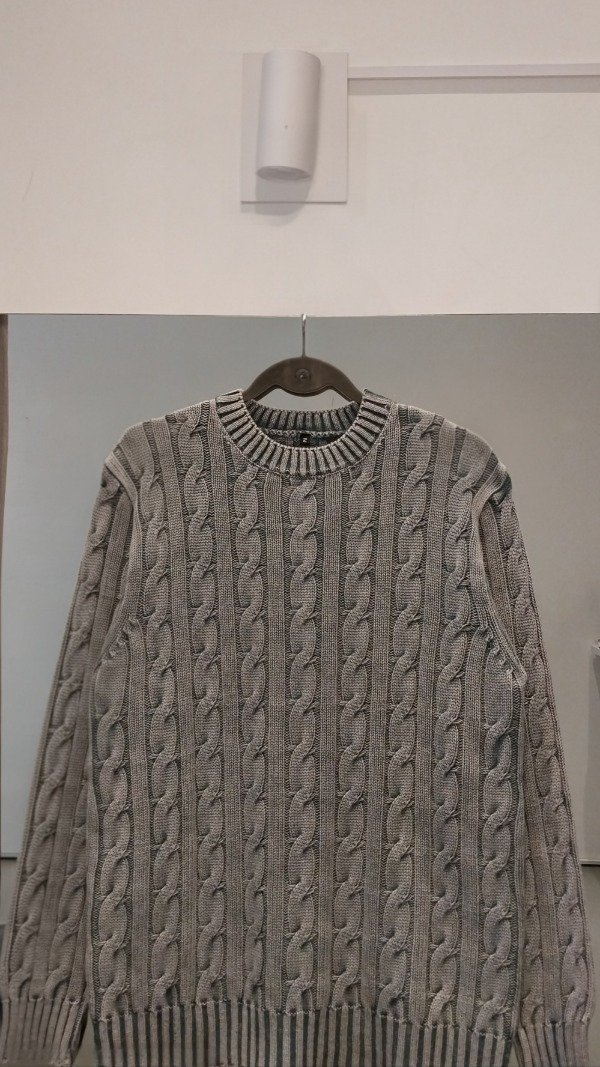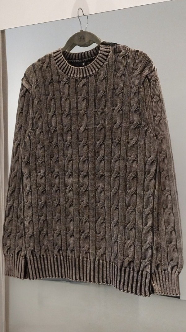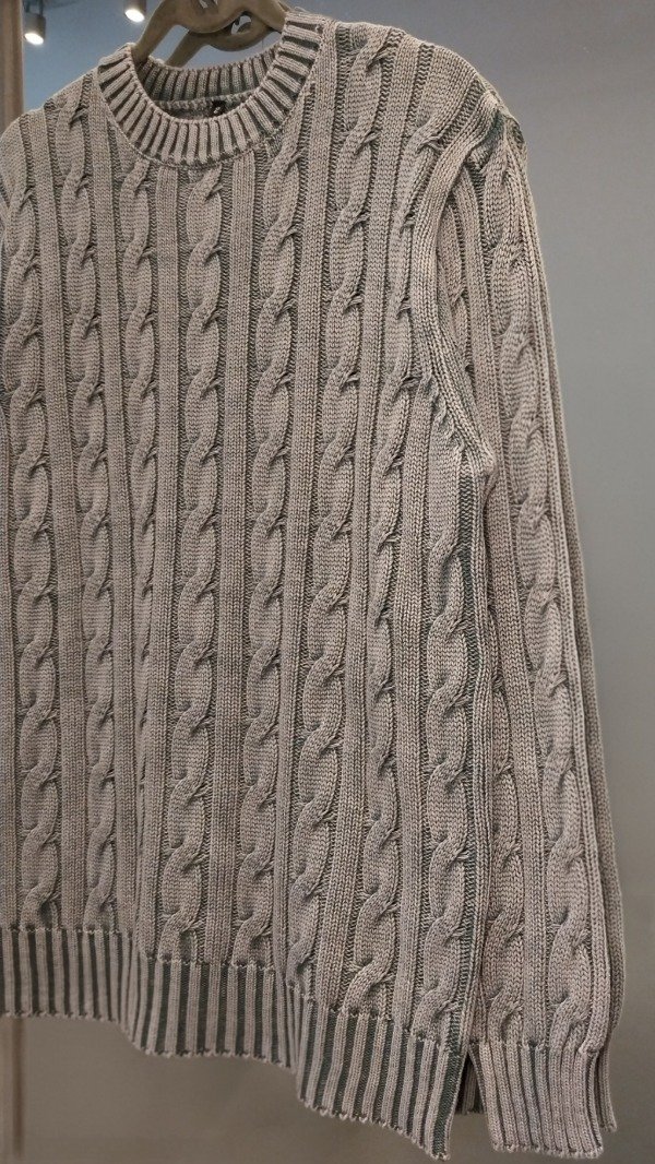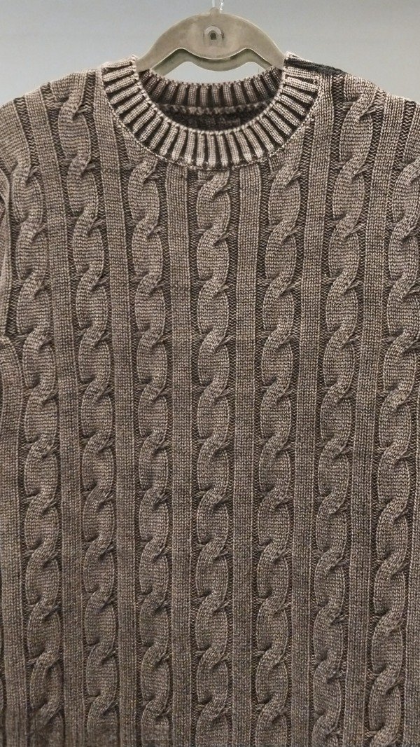 Sweater cuello redondo con canelos y trenzas hilo de algodón gastado