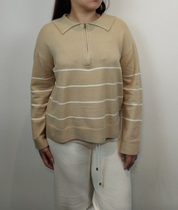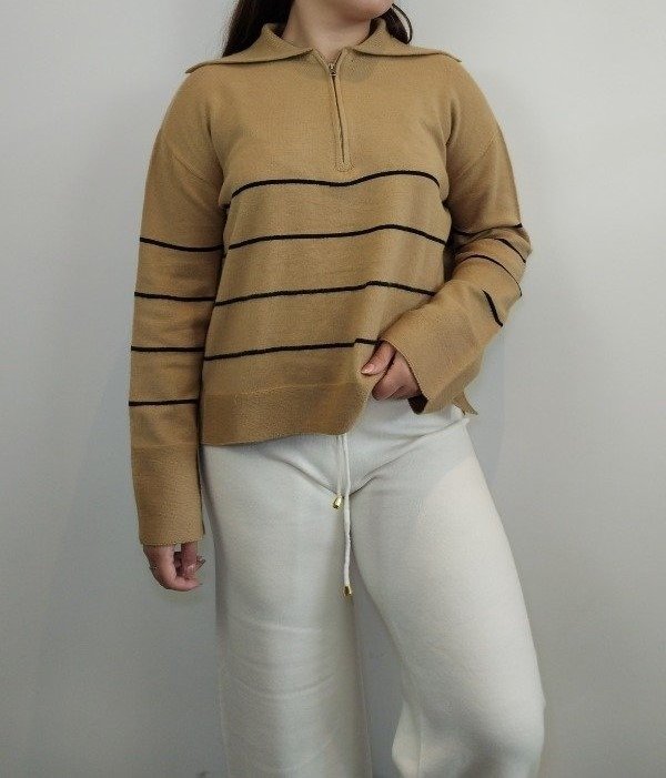Chomba rayada prenda completa con puños link y doble, tajos lateral y cierre