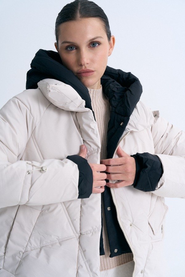 Campera importada 2 colores con cierre, botones y capucha con elástico ajustable en antebrazo
