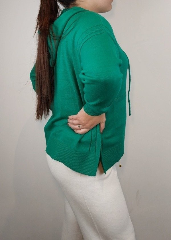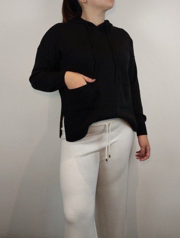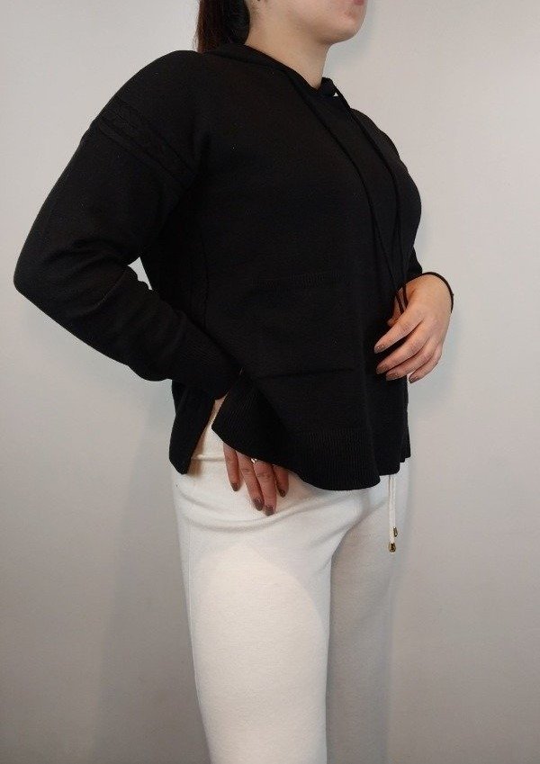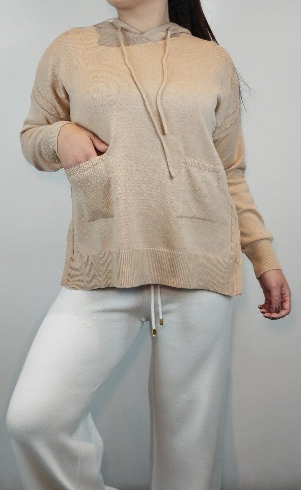 Sweater con capucha, bolsillos y trenzas a los lados