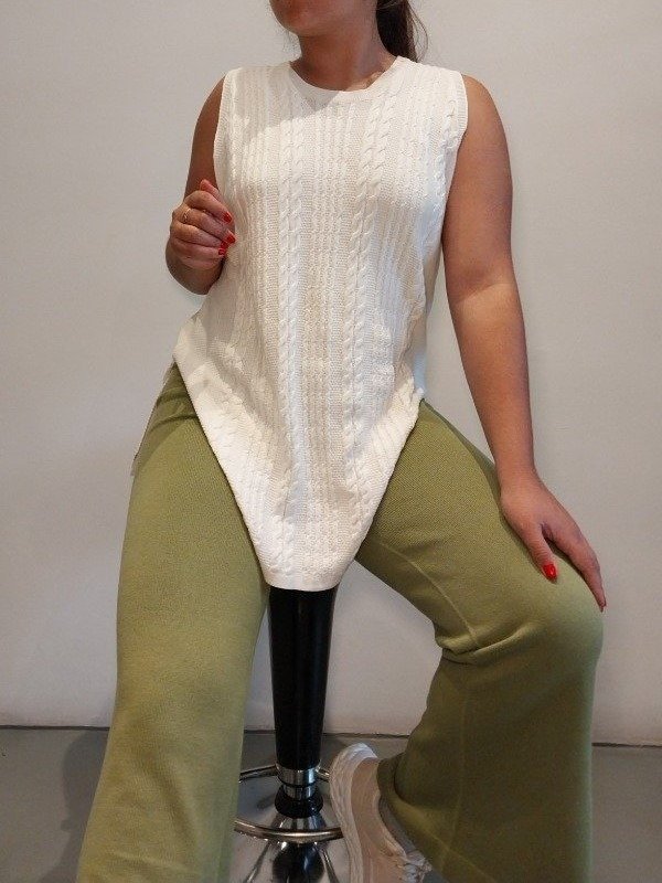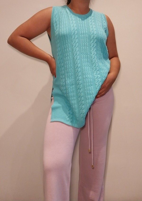 Musculosa larga redondo con tajo y trenzas