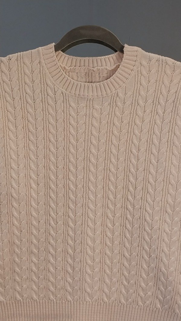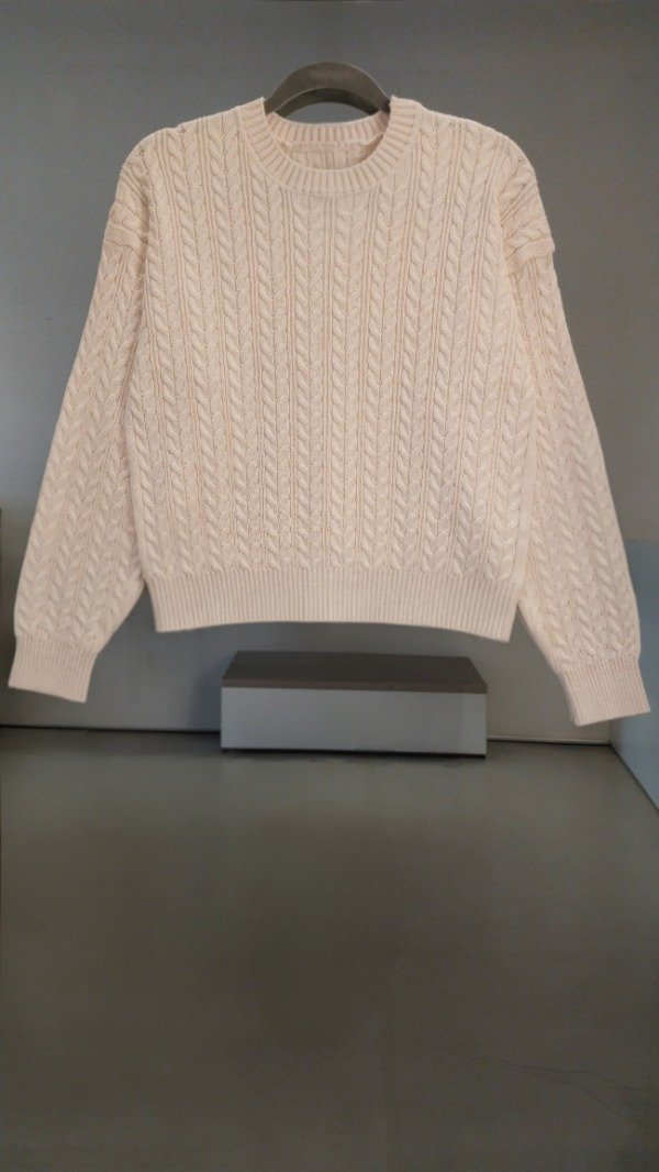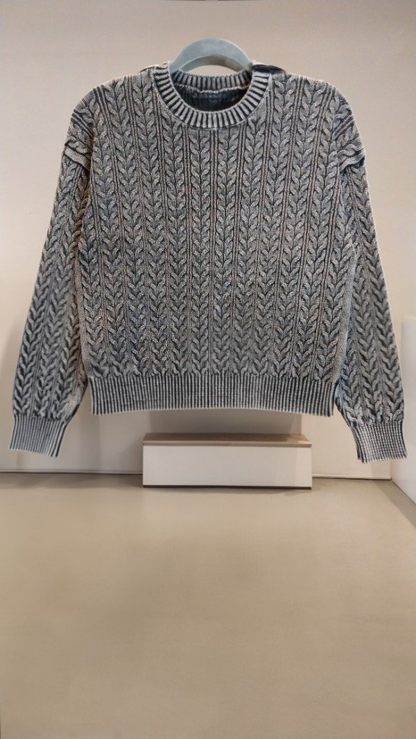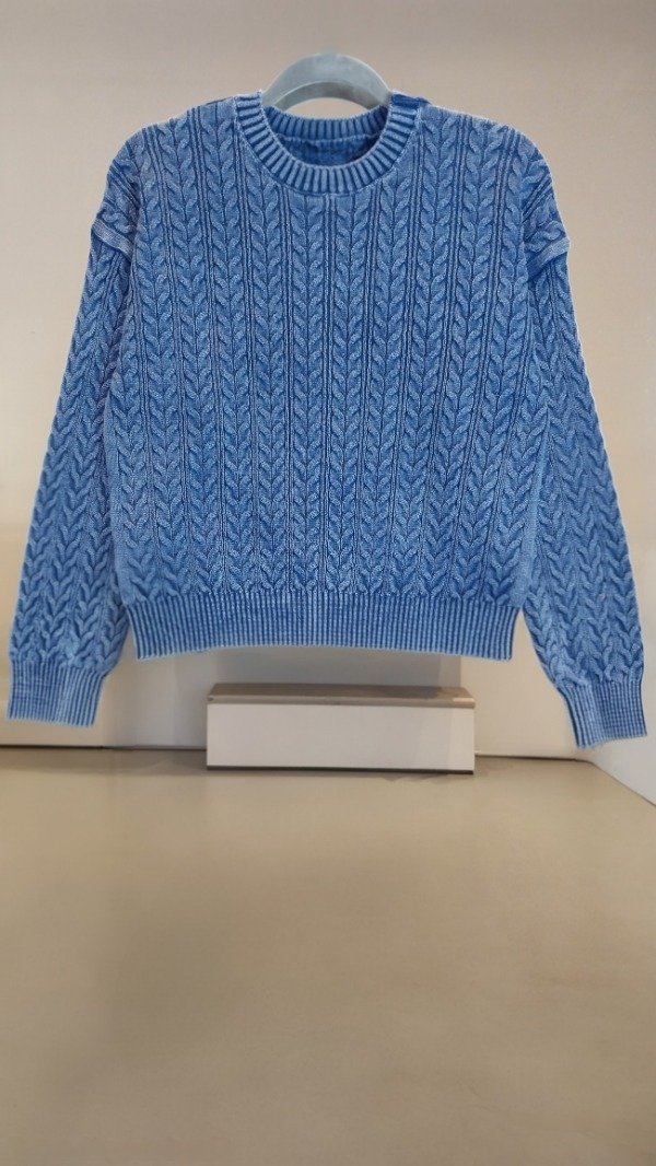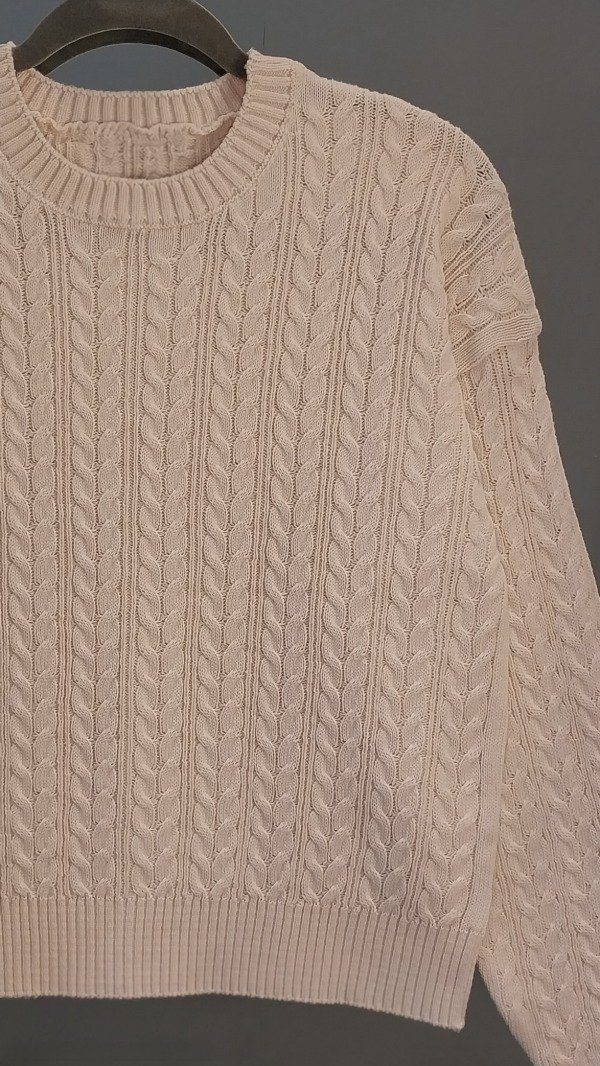 Sweater cuello redondo tejido de punto gastado doble trenza con bastones